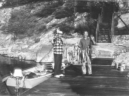 Accompanied by his first wife Helen and their two children, Roy also liked to hire a guide in Ontario's Kawartha Lakes district for a week of muskie-fishing once a year. Moving to the west coast, with his second family, upon his retirement in 1968 gave Roy many more opportunities to fish for salmon. He was a regular at Campbell River's Painter's Lodge, a popular fishing spot located on the northern part of the Island. Roy often took his son on fishing trips and the two of them spent many hours fishing for sockeye and coho. The fishing guide always knew the best spots and every fishing trip had a story about the one that got away! The less elusive catches came back for the barbeque or the freezer. Others were smoked, or canned to savour during the winter months.